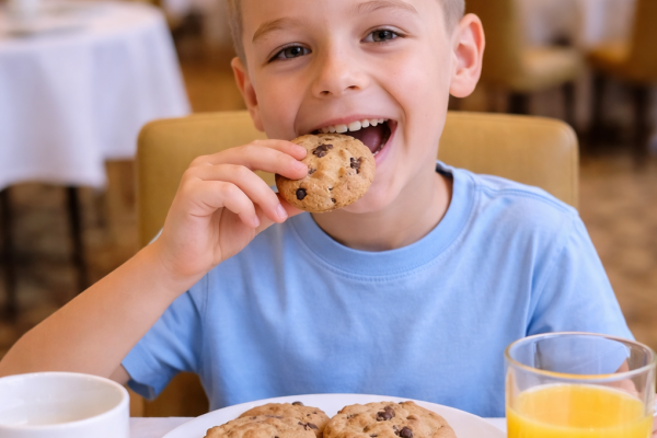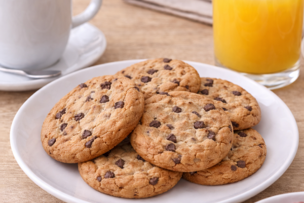 Galletas integrales con trozos de chocolate a granel, también conocidos como cookies, un producto ideal para dar más variedad en el buffet de desayunos o comidas.